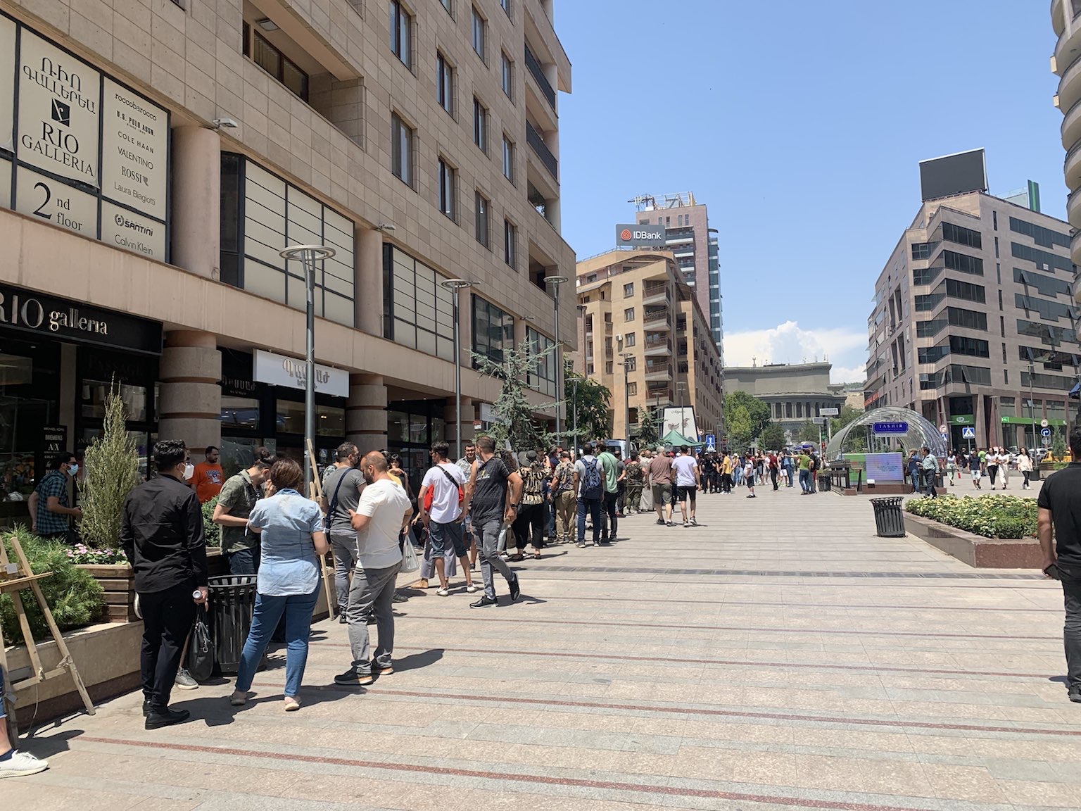 Հյուսիսային պողոտան վերածվել է մի մեծ պոլիկլինիկայի, որտեղ կորոնավիրուսի դեմ պատվաստվելու համար հսկայական, անվերջ ձգվող հերթ է։ Հերթում իրենց պատվաստմանն են սպասում Իրանից և Հնդկաստանից ժամանած հազարավոր մարդիկ։